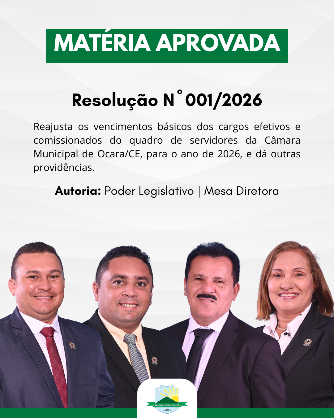 A Câmara Municipal de Ocara, por intermédio de sua Mesa Diretora, tem a elevada honra